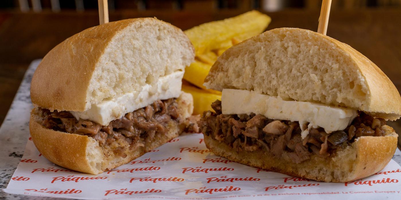 6. Montamos a paquito en el mollete tostado con la carne de cordero picada y ligada y las 2 lonchas de queso fresco.