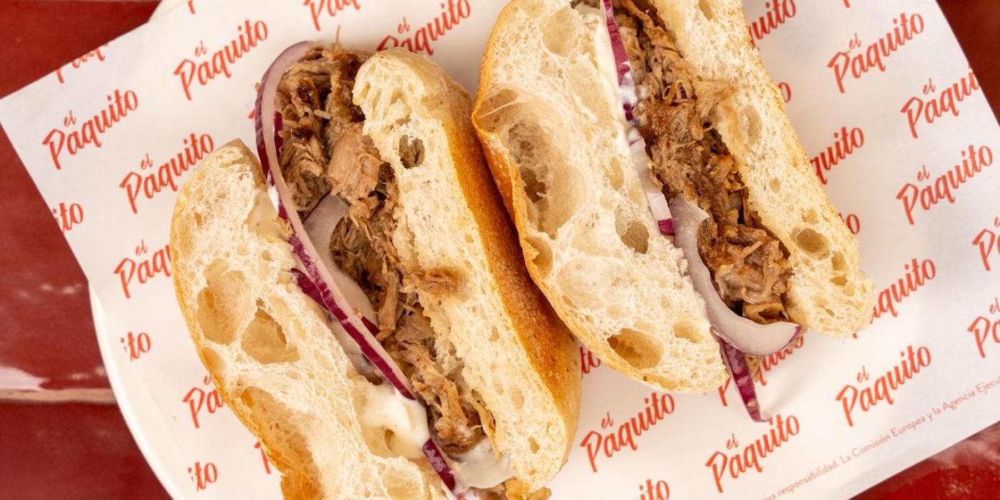Bocata planchado de cordero a baja temperatura y salsa de yogur.
