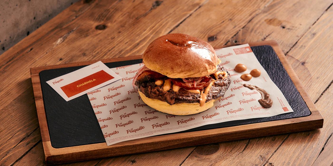 Pasamos el lingote de carne por la plancha para que coja temperatura y se dore. Montamos todo en el brioche junto a la ensalada, el boniato y la salsa.