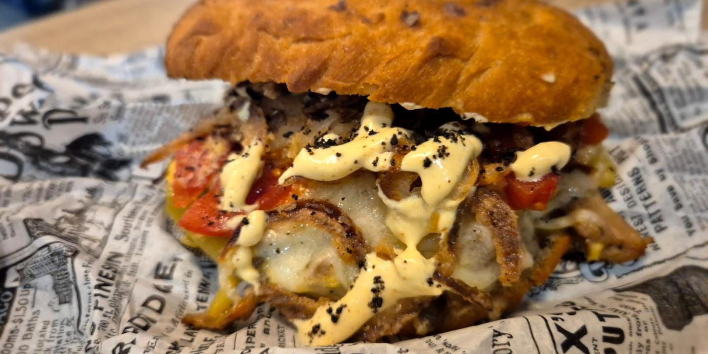 2. Abrimos el bollo y regamos con salsa de ras al hanout en la base, a continuación colocaremos la carne de cordero salteada, encima de esto añadiremos un poco de queso manchego y unas tiras de tomate confitado.